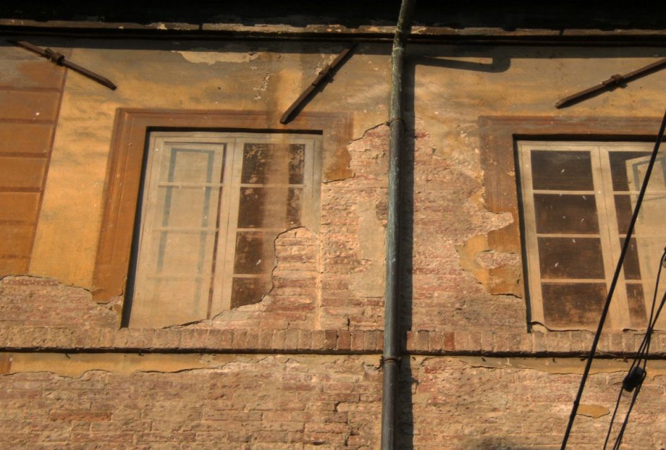 Questi fattori agiscono da soli o combinandosi tra loro: un tipico esempio si verifica con l’abbandono di un edificio che, a causa della mancanza di manutenzione, vede il manto di copertura rompersi e scivolare verso il basso. Ciò favorisce la formazione di infiltrazioni d’acqua che provocano la progressiva marcescenza e il successivo collasso dell’orditura strutturale in legno. Il risultato è il crollo della copertura, che espone le murature perimetrali all’erosione del vento e all’azione della pioggia battente, accelerando ulteriormente il degrado in un fenomeno a catena con andamento tendenzialmente esponenziale.