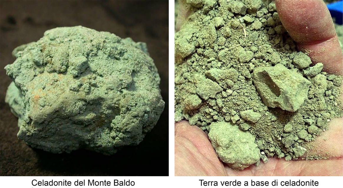 Foto 11 – Minerale di celadonite e terra verde grezza del Monte Baldo. Cortesia di Antonio Martorelli (Restauro & Colore s.r.l.)