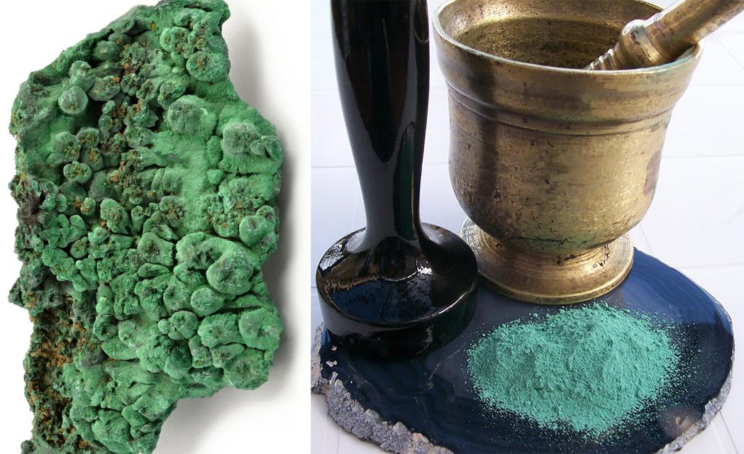 Foto 12 – Minerale e pigmento di malachite. Cortesia di Antonio Martorelli (Restauro & Colore s.r.l.)