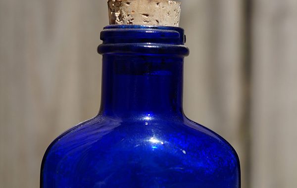 Foto 16 – Una bottiglia di vetro blu cobalto: dalla sua macinazione si ricavava lo smaltino, un pigmento utilizzato soprattutto a partire dal XV secolo