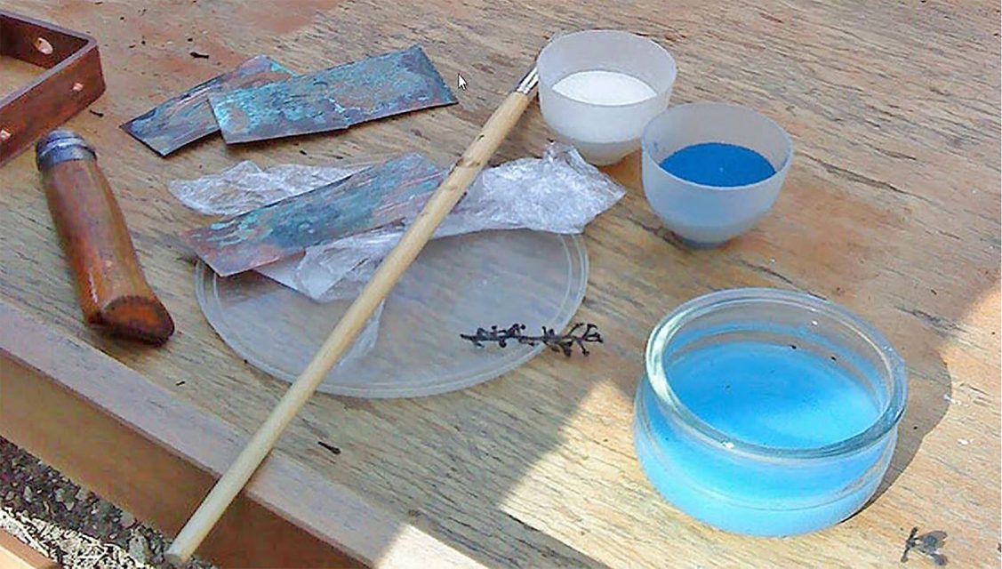 Un altro ottimo pigmento era il cosiddetto nerofumo, cioè la sottilissima fuliggine che si deposita sulle pareti e sugli oggetti in seguito alla combustione di una candela o una lucerna (Foto 1). Si trattava di un pigmento molto economico perché facilmente producibile anche in casa con una ciotola in metallo o ceramica smaltata e una lampada a olio: bastava infatti accendere la lampada e affumicare la ciotola, raccogliendo la polvere di nerofumo in un piattino o su un foglio di carta. Presentava anche il vantaggio di essere già pronto all’uso, senza bisogno di macinazione.