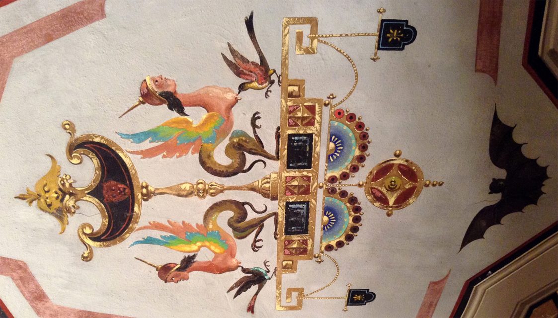 Foto 21 – Palazzo Barozzi, Vignola (Modena): grottesca liberty di fine ‘800 dipinta probabilmente con i pigmenti artificiali