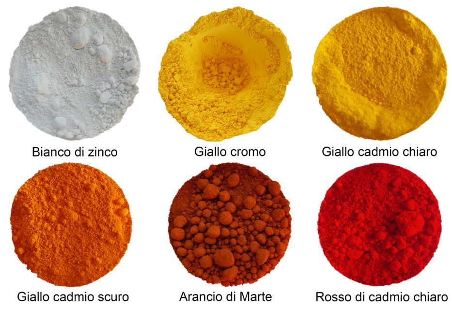 – Giallo di cadmio in numerose varietà (ad esempio chiaro e scuro), molto diffuso a partire l’800;
