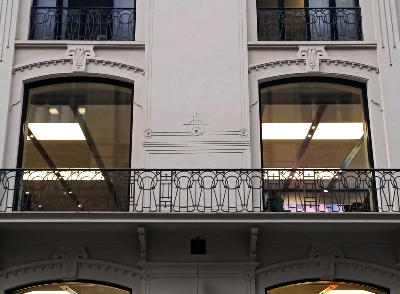 Bologna, via Rizzoli: pensilina liberty in ferro battuto e vetri colorati, purtroppo pesantemente danneggiata da un bombardamento aereo durante la Seconda Guerra Mondiale