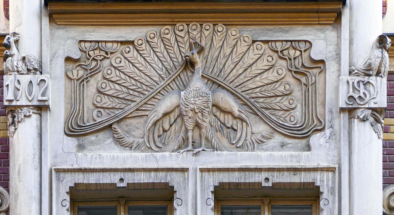 Ad essi, almeno in Italia si affianca anche una decisa componente di revival medievale e rinascimentale, che associa agli elementi più caratteristici dell’Art Nouveau alcuni stilemi formali tipicamente manieristi o quattrocenteschi, in particolare l’uso di creature immaginarie come sfingi, sirene, grifoni o chimere (Fig. 7), i fregi con puttini alati, le grottesche e l’imitazione pittorica di apparati effimeri di stemmi, festoni e ghirlande vegetali “appesi” alla facciata con nastrini rossi svolazzanti.