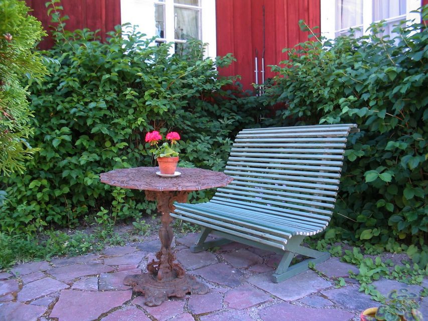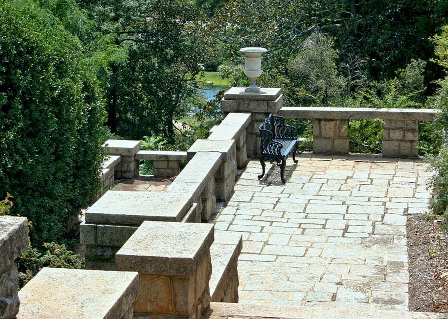 Foto 5 – Piazzola di un giardino con pavimentazione alla palladiana in lastre di pietra da spacco