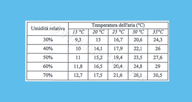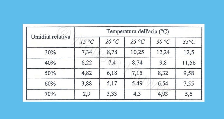 della sua ubicazione (su un prato o a distanza da un prato), dell’umidità relativa media dell’aria e della velocità del vento.
