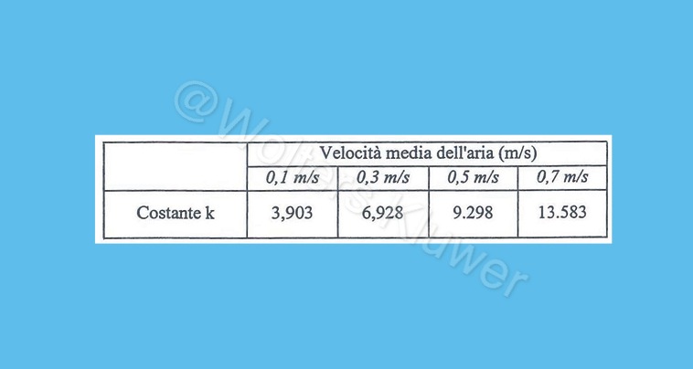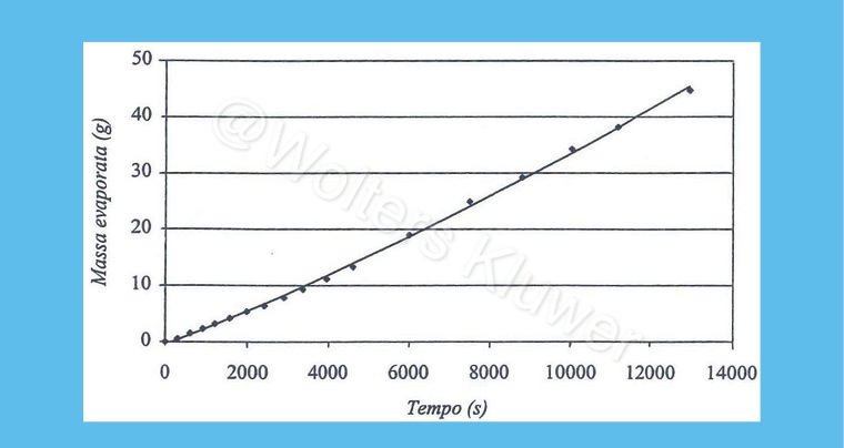Di seguito sono riportate tabelle, grafici e formule di calcolo, evidenziando come la velocità d’evaporazione sia stata calcolata al termine di ciascuna prova, misurando la quantità di acqua che evapora in un determinato intervallo di tempo, in condizioni di regime.