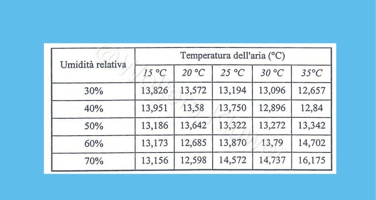 Il coefficiente di riduzione si desume da apposite tabelle che tengono conto del tipo di evaporimetro,