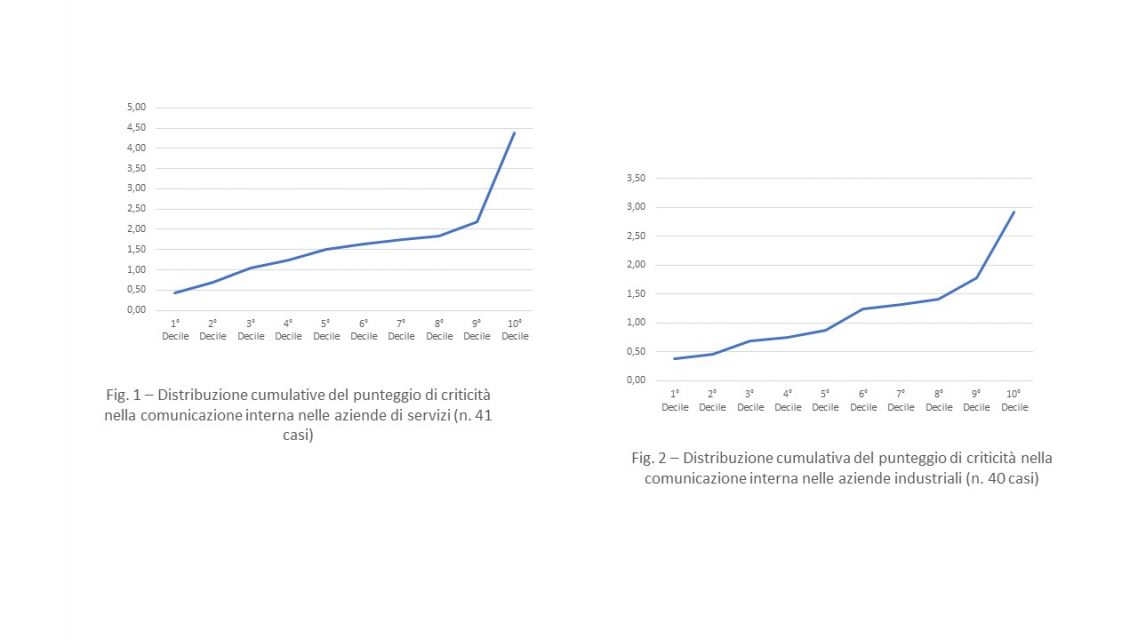 Le due diverse distribuzioni hanno avuto origine dalle osservazioni fatte sul campione storico di contesti organizzativi (n. 40 industriali e n. 41 di servizi), ove le criticità sulla comunicazione interna si sono dimostrate presenti in modo diverso.