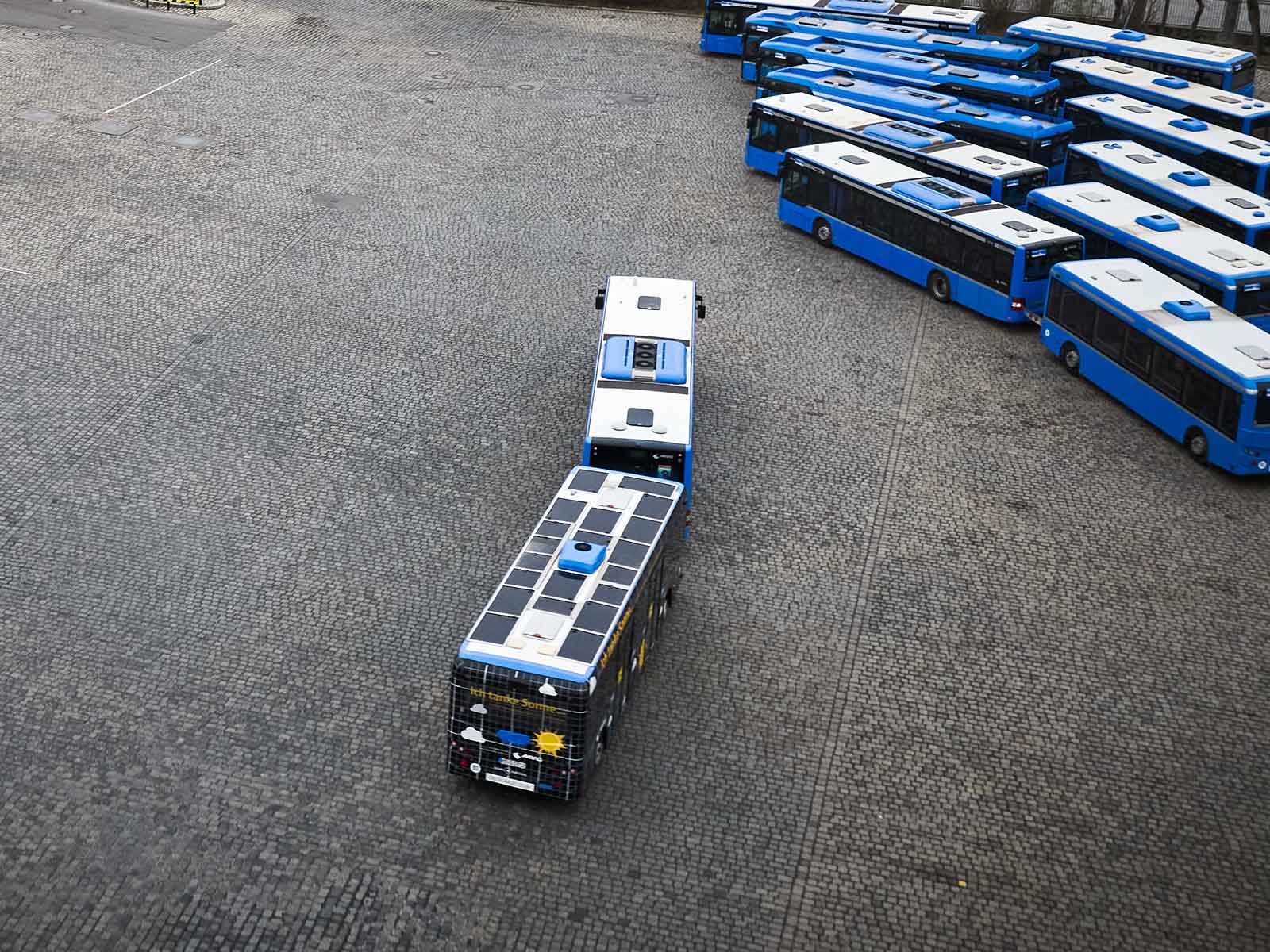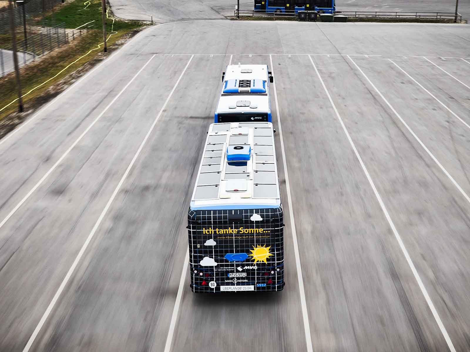 concetto di rimorchio per autobus solare personalizzato è stato sviluppato con l’azienda dei trasporti pubblici di Monaco MVG per sfruttare al meglio lo spazio e l’efficienza.