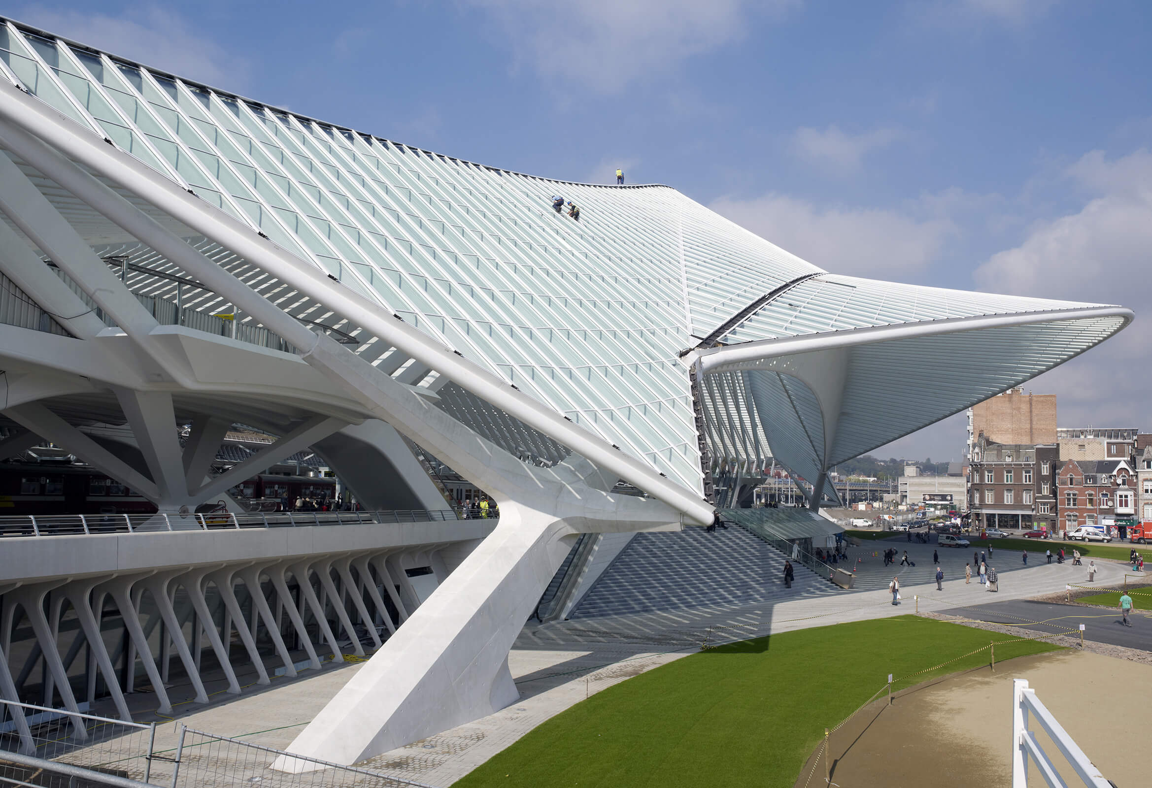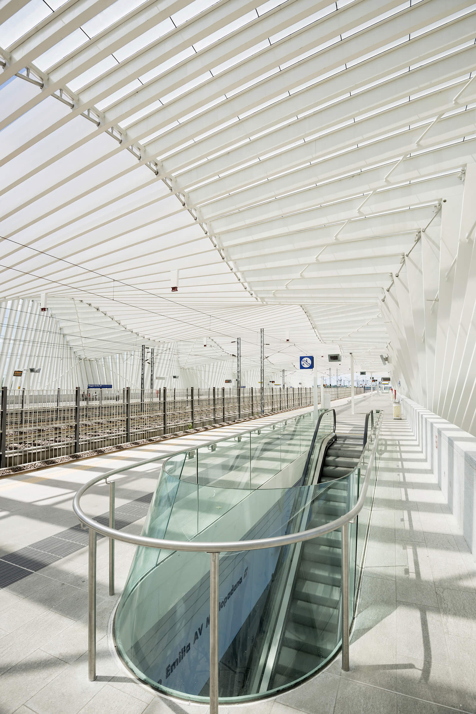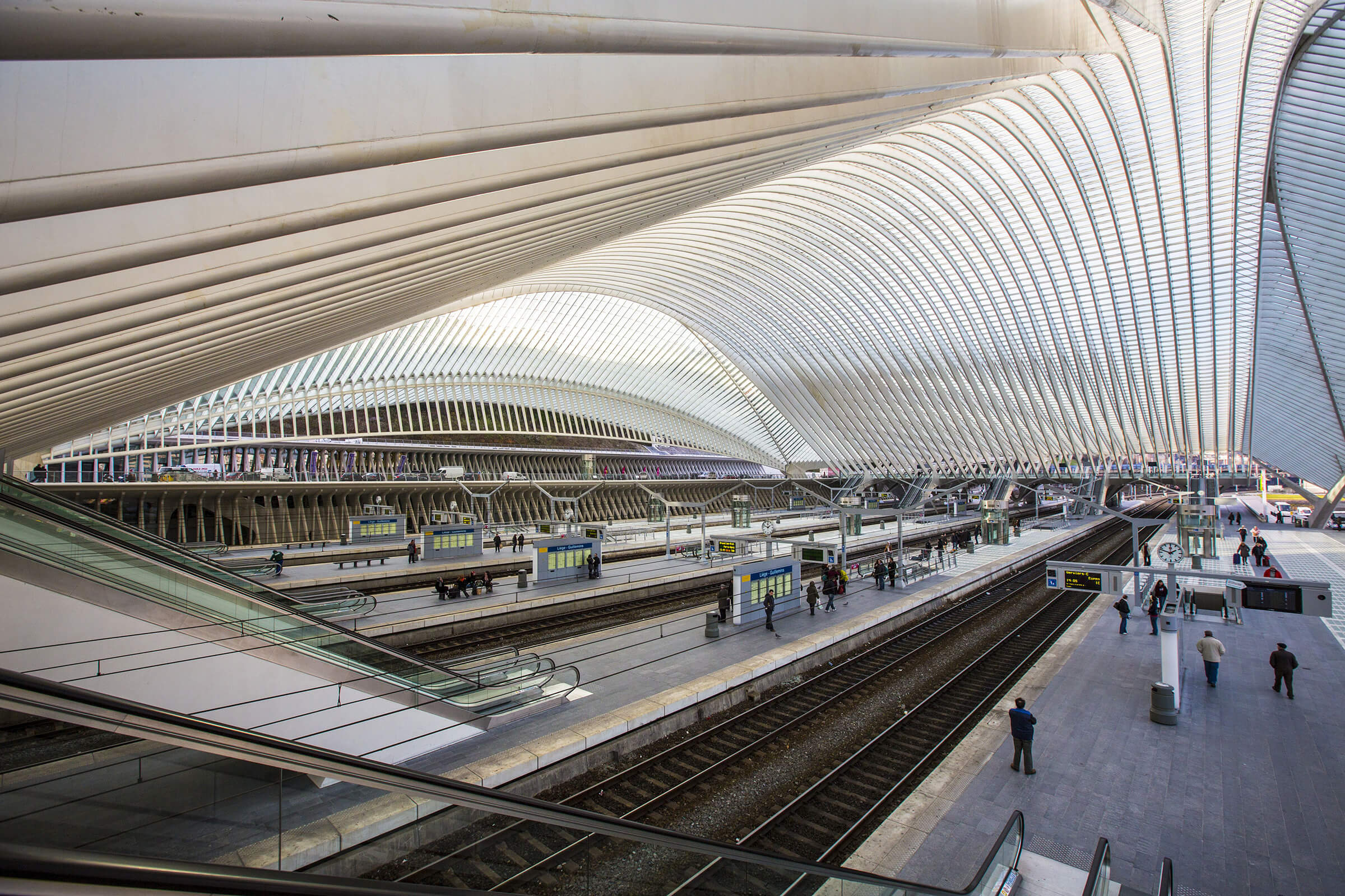 trasfigurazione estetica e sacrale. La stazione di Reggio Emilia è, ad esempio, l’emblema del movimento dinamico di un’onda; nel progetto futuristico della stazione Gare de Liège-Guillemins l’edificio diventa invece un organismo plasmato da differenti linee di flusso tra loro interagenti.