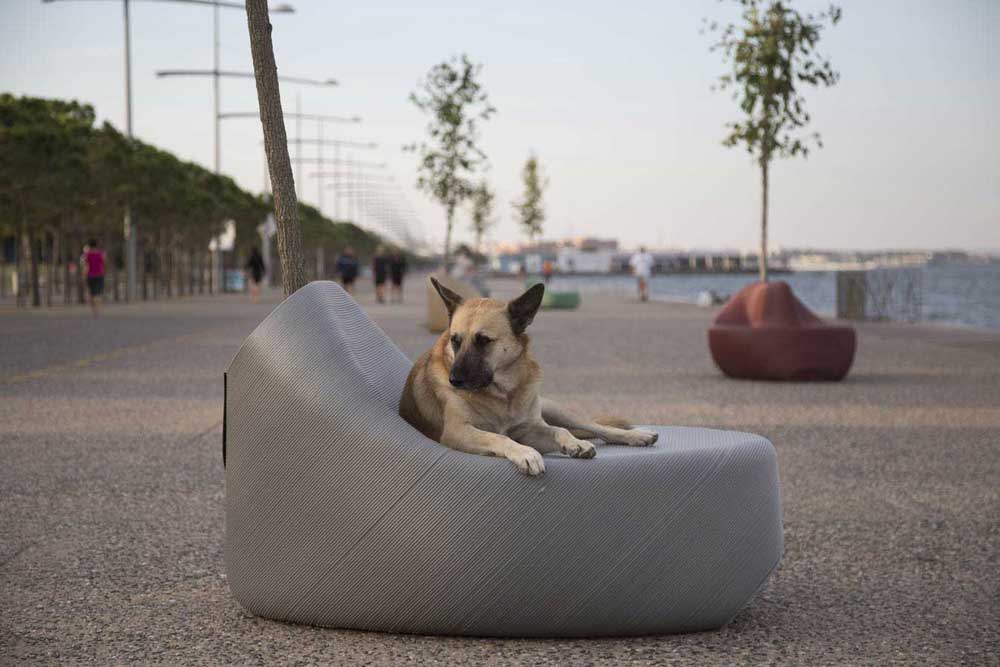 primi 10 esempi di arredi e sedute: colorati, ergonomici o disegnati per accogliere al loro interno alberi e verde e accessoriati in molti modi diversi con rastrelliere per biciclette, piccoli attrezzi per il fitness, ciotole per abbeverare i cani o scomparti per libri, sono stati poi posizionati a titolo dimostrativo l’estate scorsa lungo Nea Paralia, il lungomare della città.