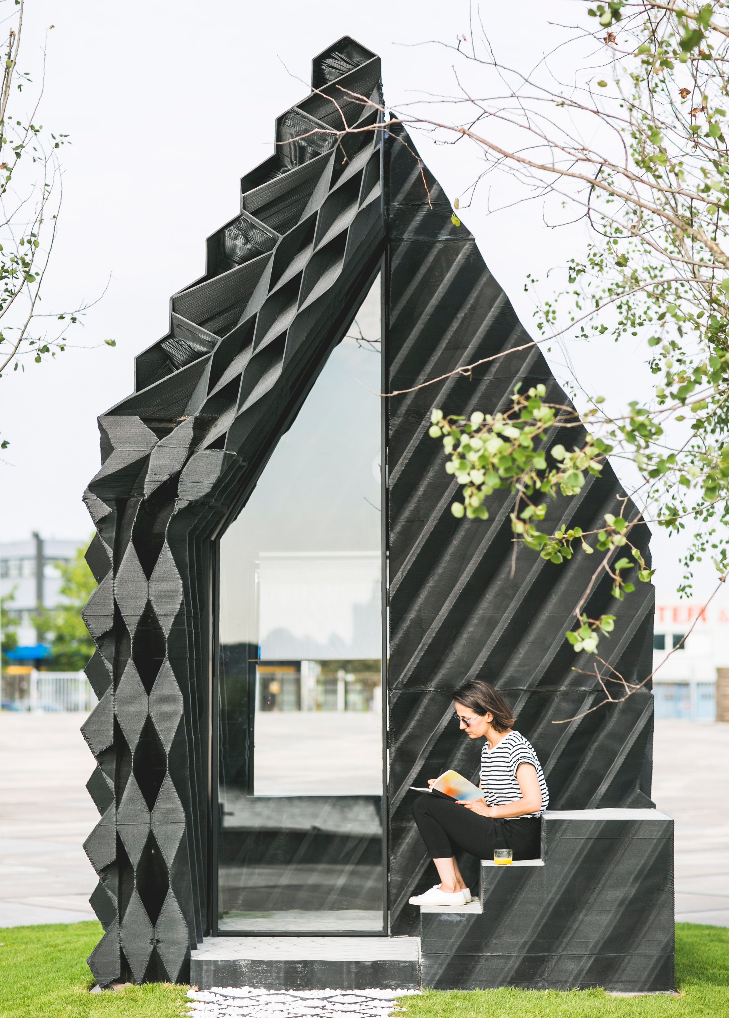 Lo studio olandese DUS architects ha completato ad Amsterdam un micro-modulo residenziale sostenibile e completamente riciclabile realizzato ricorrendo a un processo di stampa 3D sviluppato in-house. Urban Cabin è infatti il prototipo di un minuscolo edificio di 8 metri quadri di superficie per 25 metri cubi di volume costituito da elementi di una speciale bioplastica eretto per dimostrare le potenzialità edilizie dei processi di stampa 3d, che, innovandosi continuamente, stanno aprendo nuove strade di ricerca e sperimentazione dai grandi ambiti di applicazione, dalle costruzioni ordinarie, a quelle temporanee fino alla gestione dell’emergenza. Piccola ricerca sull’existenzminimun, Urban Cabin è un modulo temporaneo che imposta il nucleo di una possibile soluzione per, ad esempio, la gestione delle emergenze abitative o il supporto alle vittime di disastri. Micro casa, è stata eretta in un’ex area industriale dismessa alla periferia della capitale olandese e si costituisce di un unico ambiente illuminato da un’ampia finestra e introdotto da una porta. L’interno mette a disposizione lo spazio sufficiente per un letto doppio che, ripiegato, può diventare divano per l’utilizzo diurno, mentre all’esterno, dove è stato realizzato un piccolo giardino con vasca da bagno, è dotata di un’area riposo.