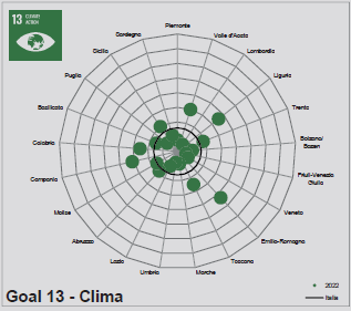 “Stranamente” – lo dimostrano anche i grafici radar – l’unico “goal” in cui le differenze si assottigliano è il n. 13, quello che riguarda il clima: quello che, al punto in cui siamo arrivati, non dipende, non può dipendere soltanto (o in buona parte) da scelte “locali”, di buona amministrazione, ma da una scelta globale…