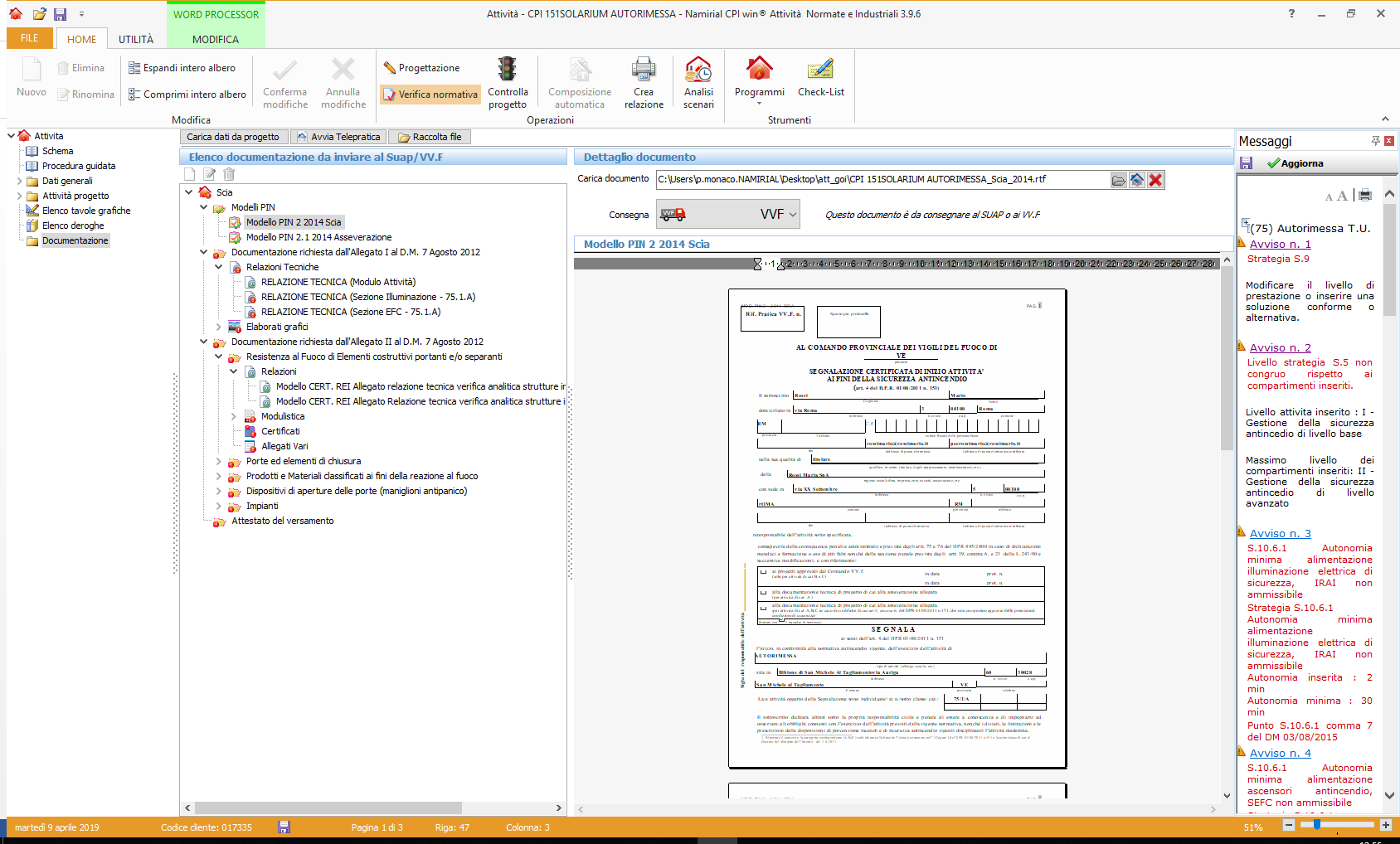 La validità del prodotto CPI win® Attività è stata ufficialmente riconosciuta dalla Rete Professioni Tecniche che, dopo aver analizzato nel dettaglio le funzionalità innovative del software CPI win® Attività come strumento di supporto alla progettazione, con nota prot. 675/2018 del 30 luglio 2018 ATTESTA che la ditta NAMIRIAL S.p.A. ha sviluppato un programma informatico di ausilio alla progettazione avanzata mediante il Codice di prevenzione incendi (D.M. 03/08/2015), che soddisfa sostanzialmente i requisiti tecnici indicati nell’AVVISO in oggetto.