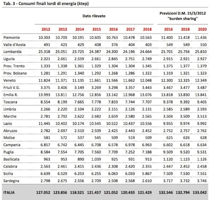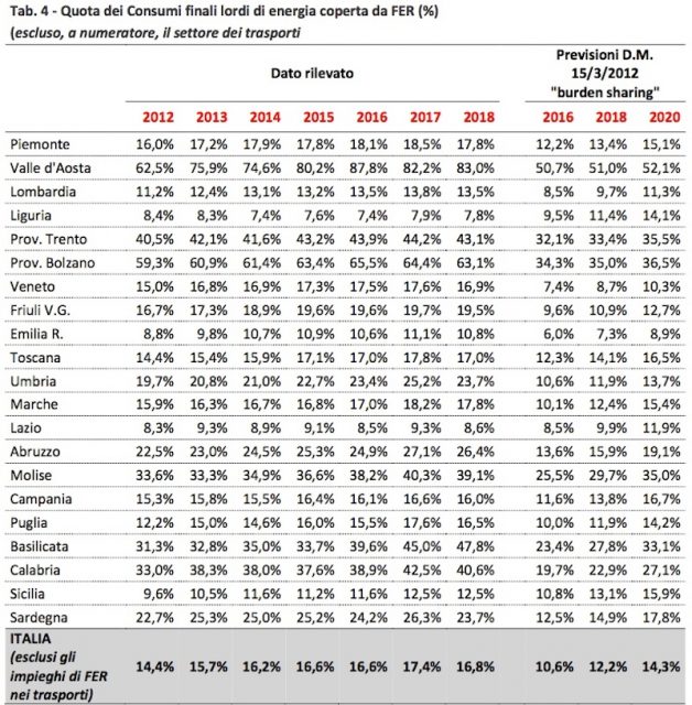 Tuttavia, a differenza dell’obiettivo nazionale, per il calcolo del numeratore degli obiettivi regionali non si tiene conto dei consumi di energia da FER nel settore dei trasporti, in genere dipendenti da politiche stabilite a livello centrale.