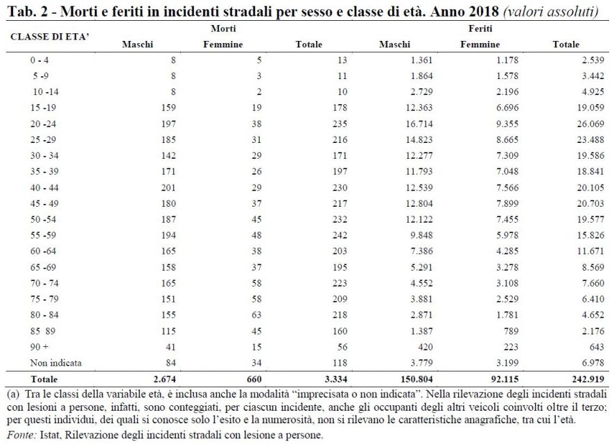 Nel 2018 si assiste ad un preoccupante innalzamento delle vittime fra i giovani di 15-29 anni. Inoltre c’è un forte incremento di vittime anche tra gli individui in età 70-74 anni, mentre diminuiscono tra i bambini (0-14 anni).