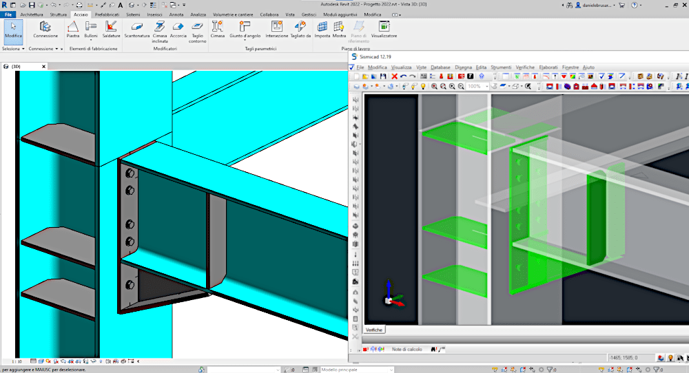 In questo periodo, inoltre, lo sviluppo dell’applicazione si è concentrato in maniera maggiore proprio sulle strutture in acciaio. Sismicad può ricreare il suo modello in Revit in famiglie native ed editabili, come colonne, travi o reticolari ma anche giunzioni tra le aste. Il flusso di lavoro prevede che creata o importata la struttura in Sismicad, si verifichino secondo normativa gli elementi, si progettino le giunzioni e poi si restituiscano le dimensioni e gli ingombri aggiornati al software di BIM authoring.