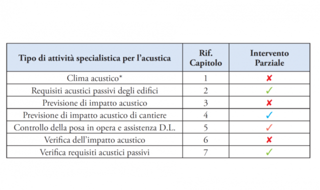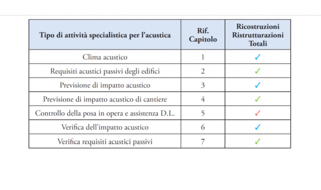 Non tutte le voci sono obbligatorie per legge e a seconda del caso concreto potranno essere ottimizzate. Tuttavia mantenendo come obiettivo una corretta progettazione acustica non è sempre possibile riferirsi solo ed esclusivamente ai meri adempimenti di legge pena la qualità dell’opera.