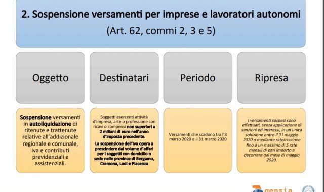 Tabella: Sospensione versamenti per imprese e lavoratori autonomi (art. 62, commi 2, 3 e 5 del Decreto cura Italia)
