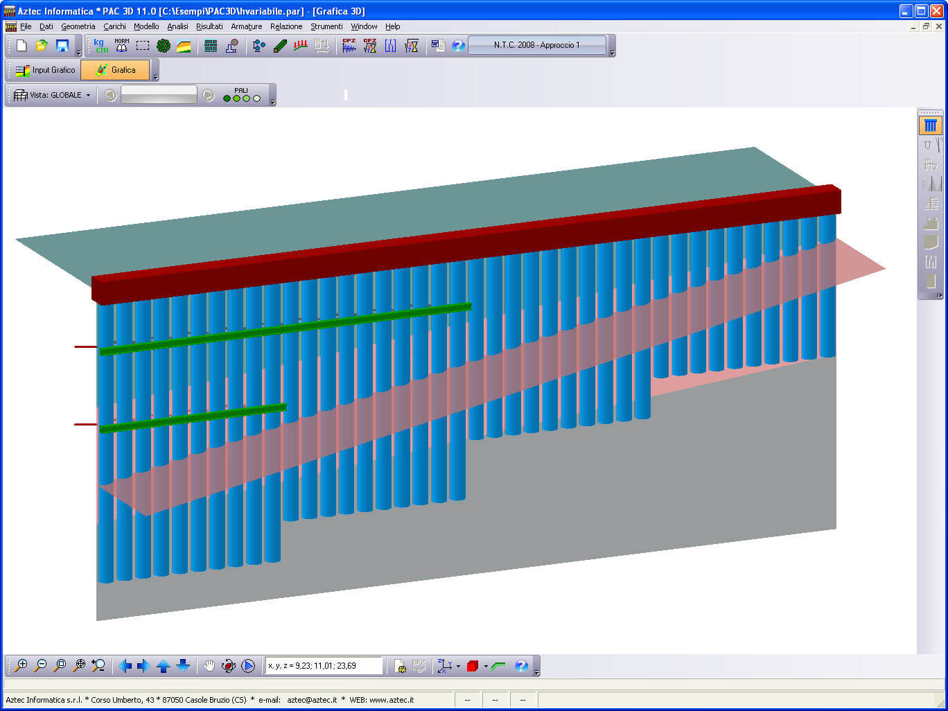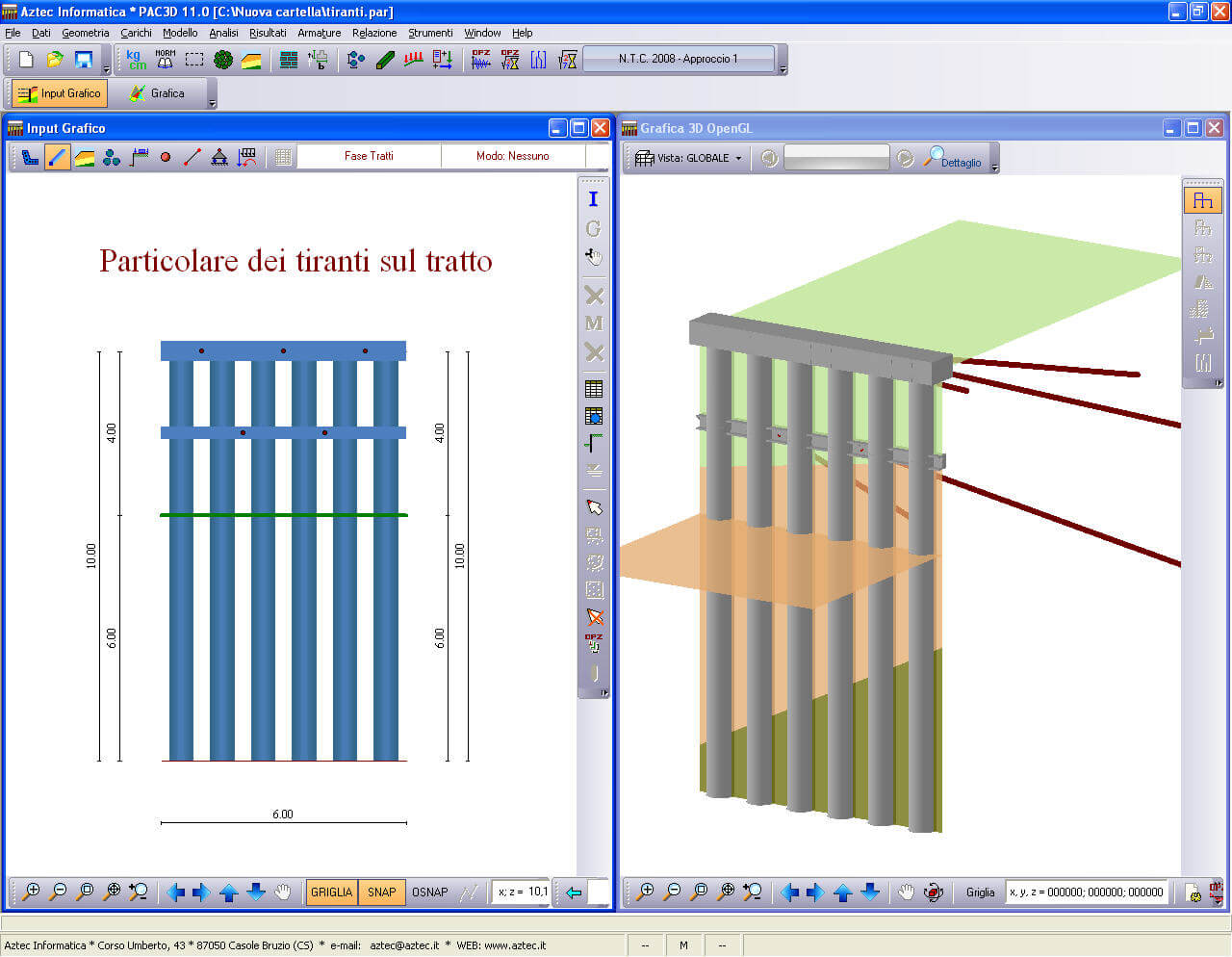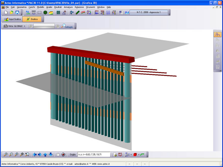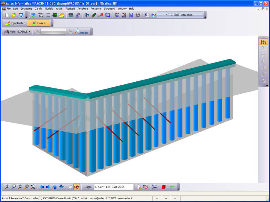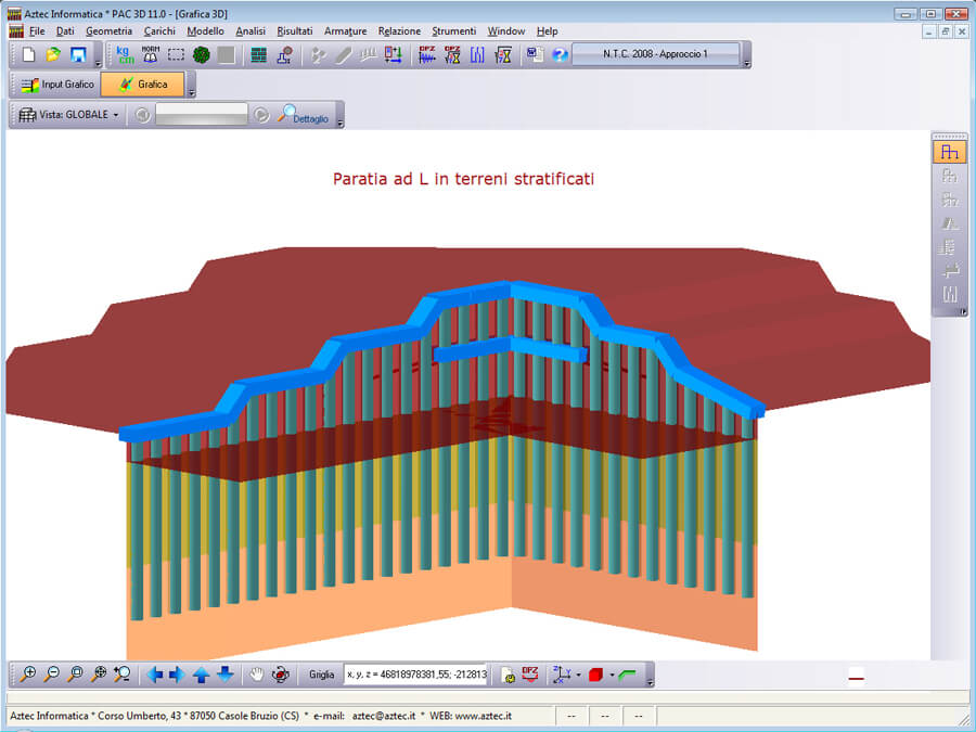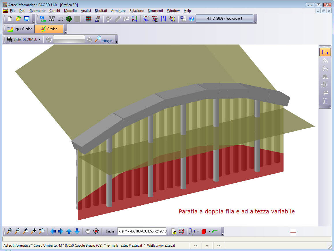 Il programma PAC – Paratie consente di effettuare l’analisi ed il calcolo di paratie di pali, di micropali (anche su più file), berlinesi, con tiranti, a setti in c.a., con sezione a T, metalliche, con rigidezza per tratti variabile, con muro in testa, palancole