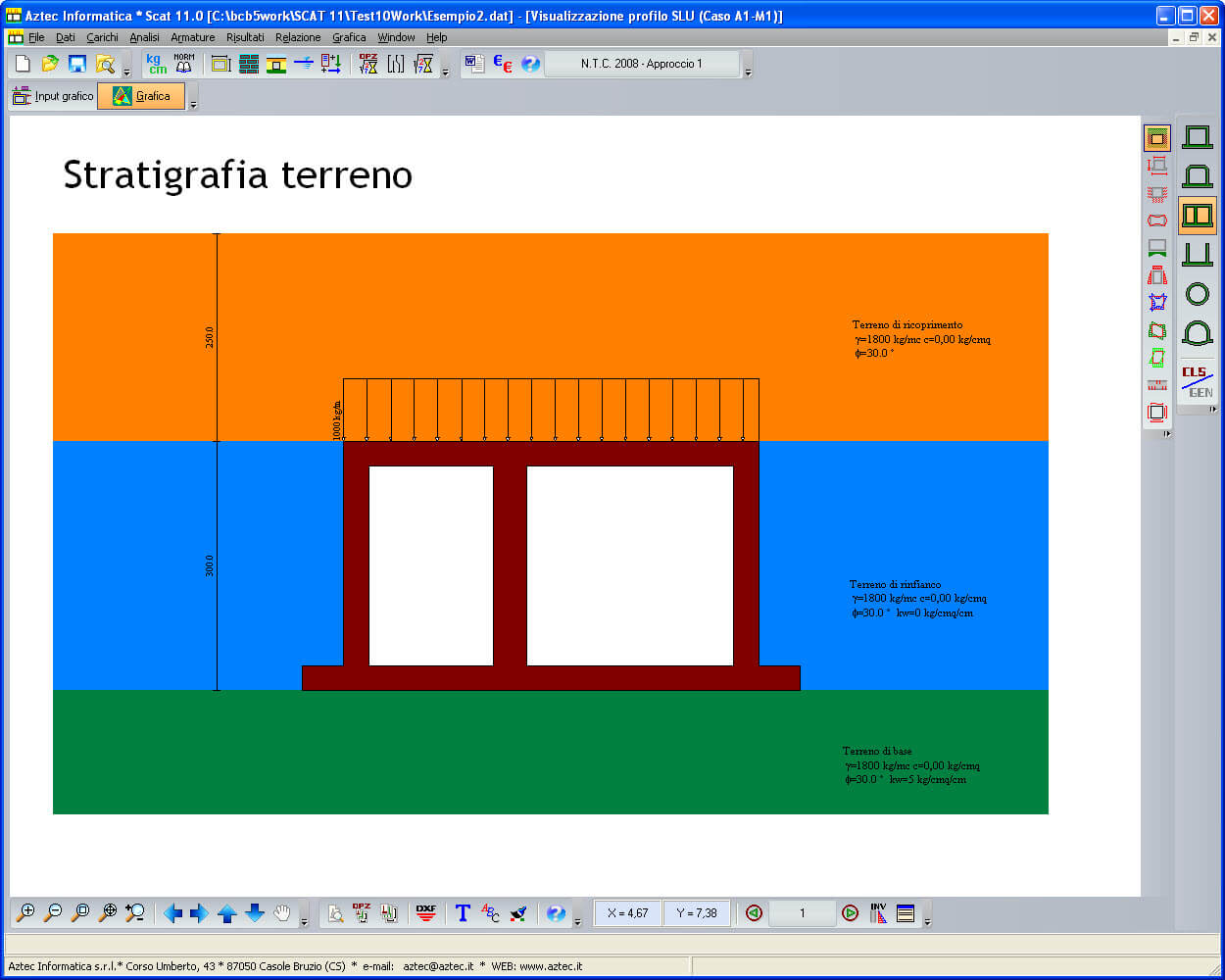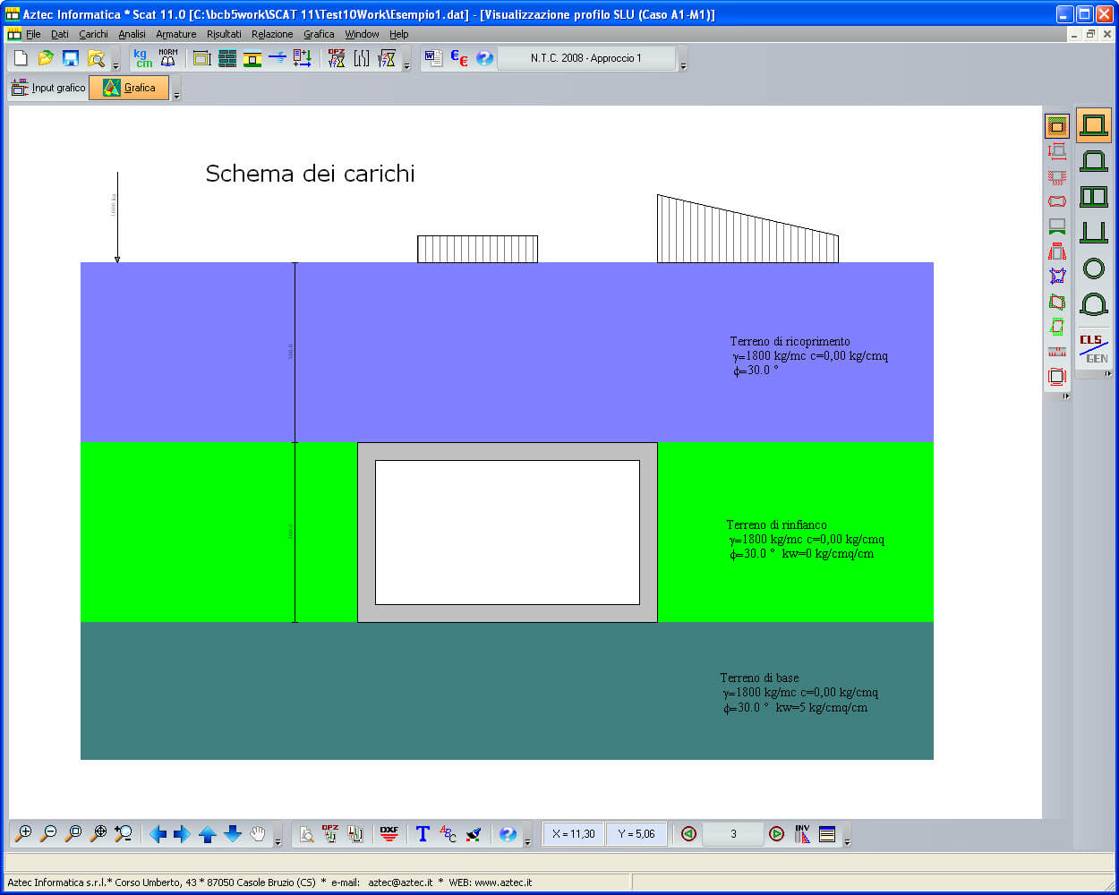 Il programma MAX (Muri di Sostegno) consente di effettuare l’analisi ed il calcolo di muri a gravità, a semigravità, a mensola, a gradoni, con contrafforti, con mensole di marciapiede e/o contrappeso, in CLS o pietrame, su pali di fondazione, su micropali, con tiranti attivi e passivi, con sperone o dente di fondazione, con vincolo in testa per simulare i muri di cantina