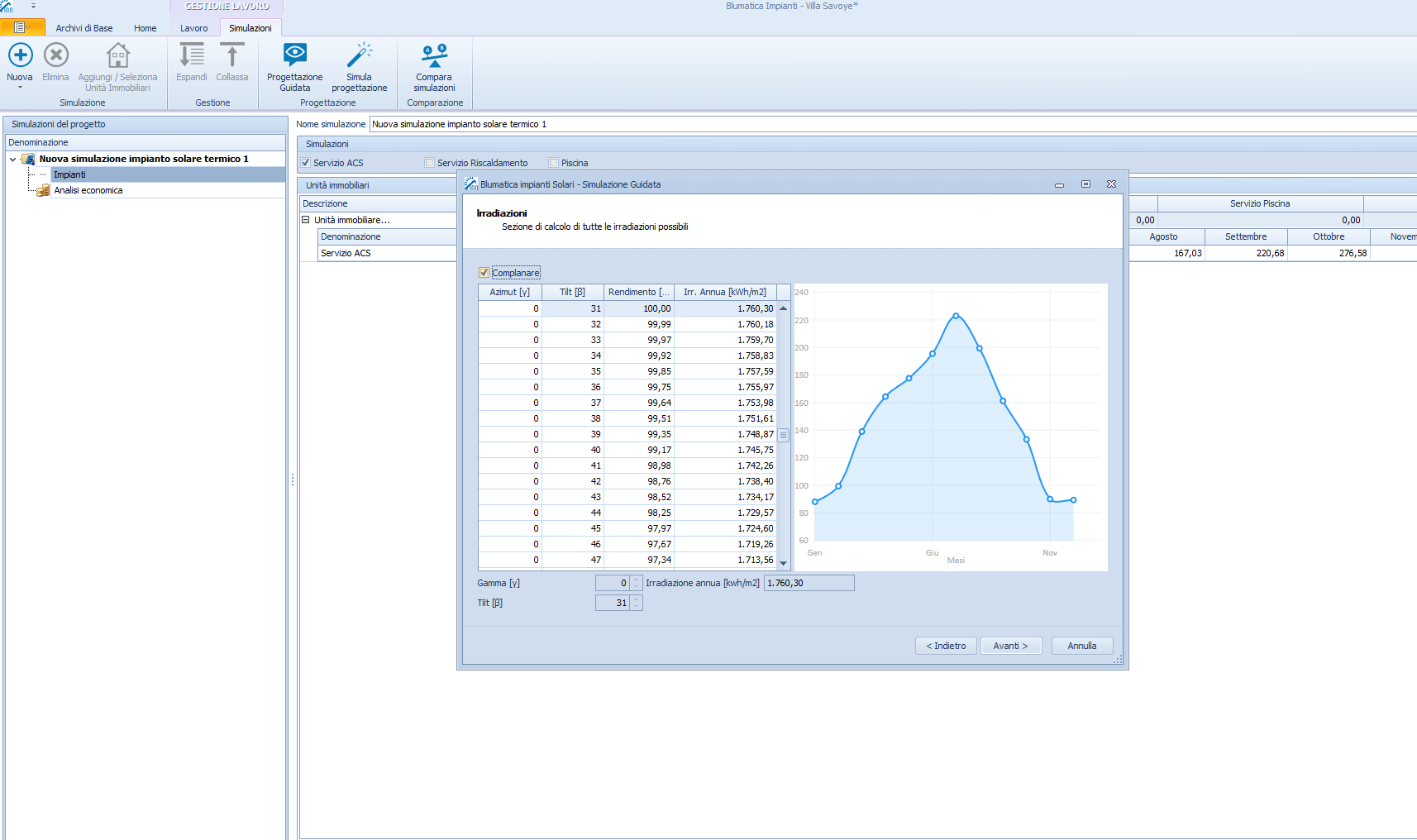 Compara simulazioni – Scelta e confronto tra le simulazioni effettuate con analisi di competitività dei parametri energetici/economici in base alle specifiche esigenze.
