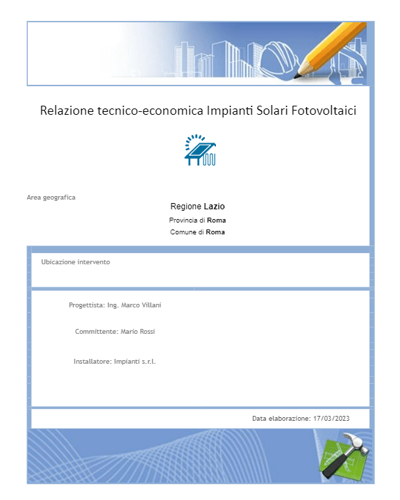Progettare un impianto solare fotovoltaico non è mai stato così facile e veloce. Software dedicato alla progettazione di impianti solari fotovoltaici, secondo le norme UNI e CEI vigenti. Elaborazione di una dettagliata e professionale analisi tecnico-economica, schema di layout impianto allegato.