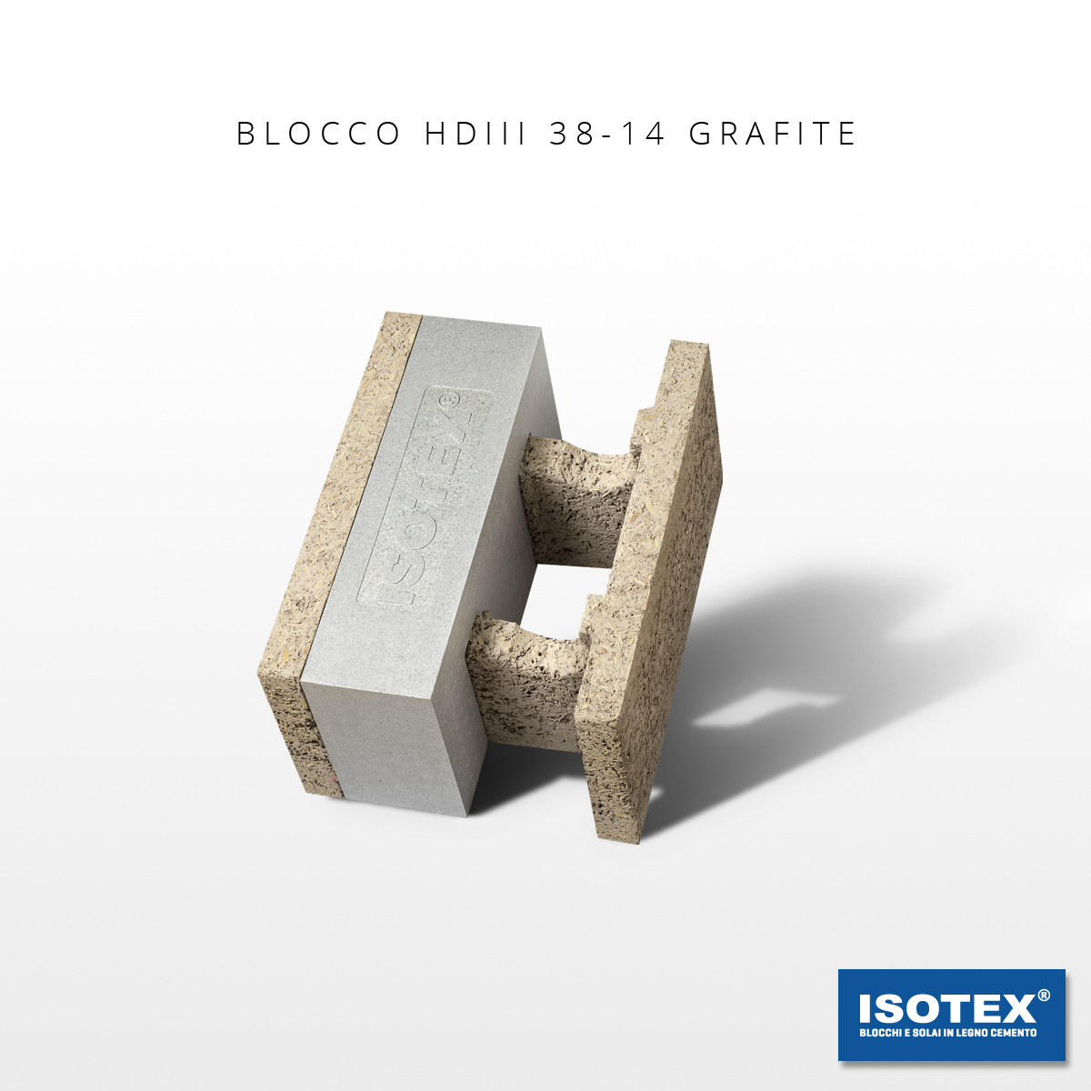 Il nuovo Blocco ISOTEX in legno cemento 44/20 con grafite BASF, presenta uno spessore inserto di isolante che passa di 20 cm, mantenendo lo spessore del getto di calcestruzzo di 15 cm, dato richiesto dalle norme tecniche vigenti stabilite dal Decreto Ministeriale 14/01/2008