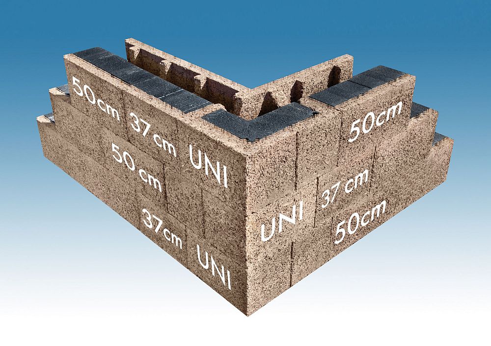 Con il blocco cassero in legno cemento di spessore 25 cm, con 16 cm di calcestruzzo, si realizzano pareti portanti interne. I blocchi sono posati a secco senza malta