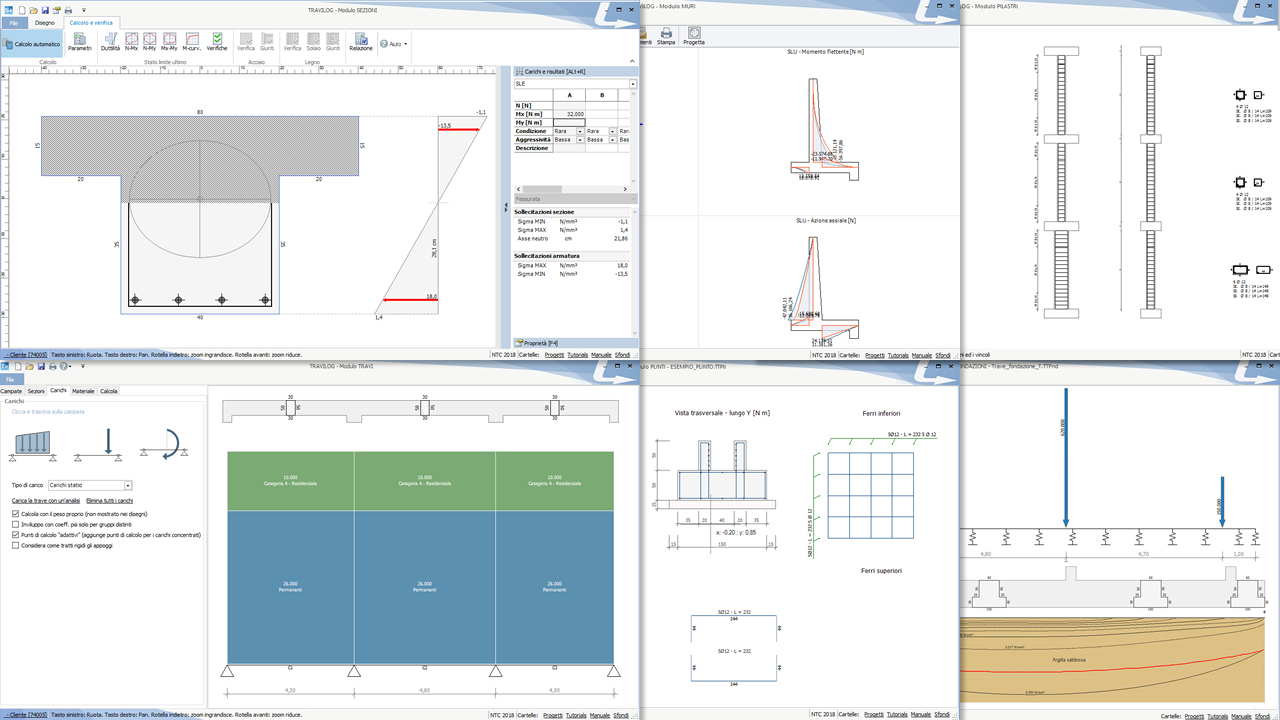 TRAVILOG guida il progettista nella creazione del modello partendo da un file IFC, DWG o disegnando a mano. In un unico ambiente di lavoro gestisci il modello 3D ed esegui tutte le verifiche richieste comprese le verifiche geotecniche di capacità portante e cedimento.