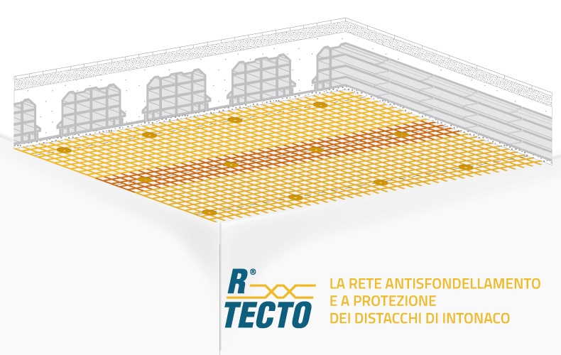 R-TECTO® è la rete antisfondellamento firmata Sicurtecto Srl: studiata, progettata e certificata in ogni sua componente per garantire le massime prestazioni di sicurezza in caso di sfondellamento, ossia il distacco e la successiva caduta della parte inferiore delle pignatte e dell’intonaco.