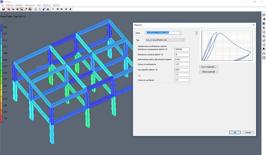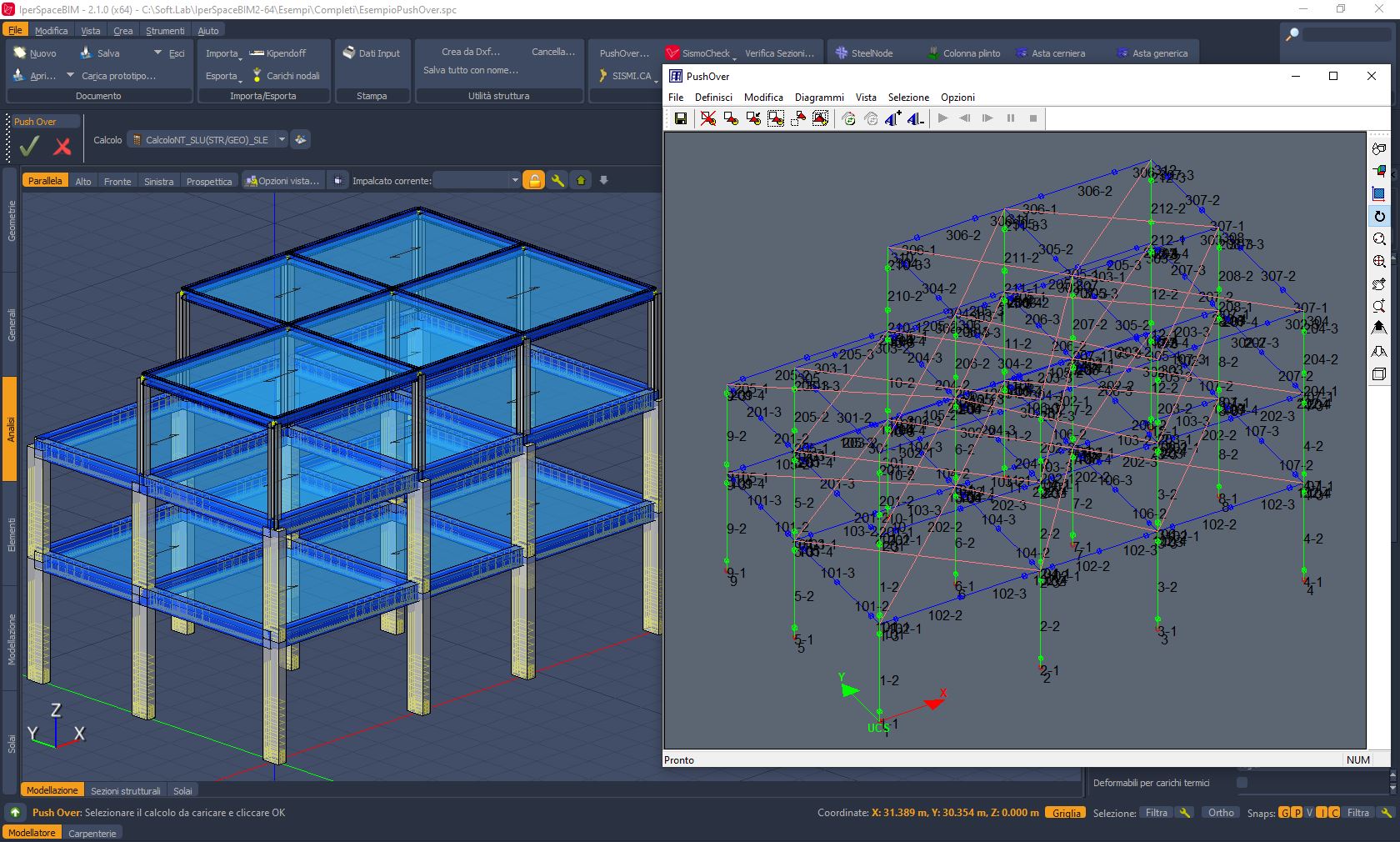 Pushover è il modulo di IperSpace BIM per l’analisi statica non lineare e si basa sul solutore SeismoStruct, un software ad elementi finiti capace di predire il comportamento, in grandi spostamenti, di strutture intelaiate tridimensionali soggette a carichi statici e dinamici, tenendo in conto della non linearità sia geometrica che del materiale, utilizzando il modello a plasticità diffusa a fibre.