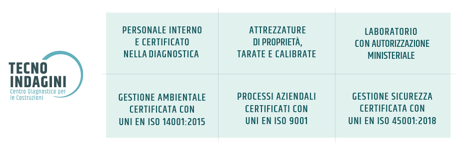 Le NTC 2018 hanno apportato un cambiamento rivoluzionario nell’ambito diagnostico: le Norme hanno introdotto l’obbligo di far certificare prove e analisi sulle costruzioni esistenti solo a soggetti qualificati, per assicurare analisi e risultati di qualità ed oggettivi. La riproducibilità e ripetibilità dei risultati sperimentali deve essere garantita da requisiti minimi di formazione e certificazione del personale, qualità ed efficienza delle attrezzature e qualità aziendale.