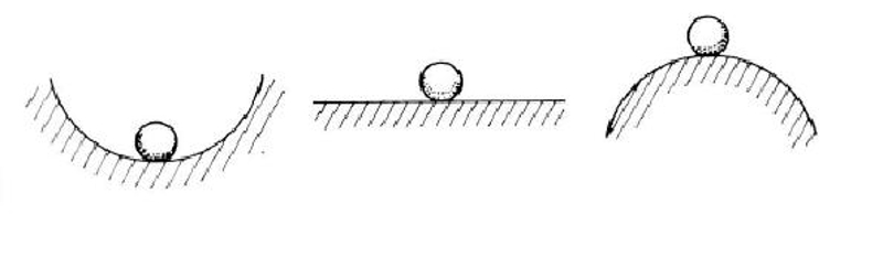 Nel caso di sistemi meccanici rigidi la condizione di stabilità dell’equilibrio dipende dalla configurazione geometrica, di vincolo e di carico del sistema. Risulta invece indipendente dall’entità dei carichi agenti. Un esempio chiarificatore, che illustra efficacemente le diverse configurazioni di equilibrio, è il caso della sfera pesante vincolata a una superficie. La configurazione di equilibrio stabile, come è facile intuire, è quella corrispondente a un minimo di tale superficie, mentre quella di equilibrio instabile corrisponde a un massimo della superficie. Una configurazione di equilibrio indifferente è invece caratterizzata da una tangente orizzontale della superficie nel punto di equilibrio.