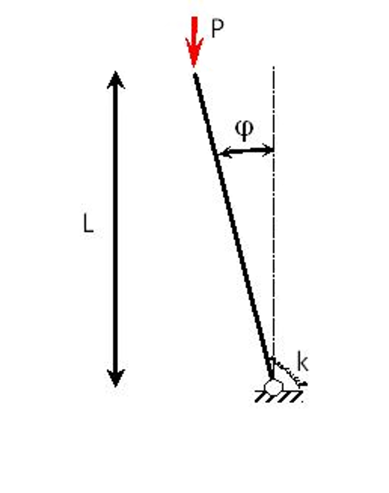 La stabilità delle strutture è talvolta studiata tramite schematizzazione con sistemi discreti a elasticità concentrata, in cui la configurazione della struttura è descritta da un numero finito di gradi di libertà. L’asta rigida incernierata alla base con carico verticale in sommità e molla rotazionale è un esempio classico di sistema a un grado di libertà nel quale sono evidenziabili le caratteristiche sopraddette del carico critico (Pcr = k/L). Tale valore è ottenuto considerando, secondo un criterio statico, l’equilibrio nella configurazione deformata (equilibrio variato): la condizione critica si ha uguagliando il momento stabilizzante (dovuto alla molla interna) con il momento instabilizzante (dovuto al carico esterno). Chiaramente se k = 0 il sistema diventa rigido e la condizione di stabilità non dipende dal valore di P (si ha equilibrio stabile solo se = 90°). Il carico critico corrisponde anche alla condizione per cui l’energia potenziale totale del sistema cessa di essere definita positiva in corrispondenza della configurazione di equilibrio (criterio energetico).