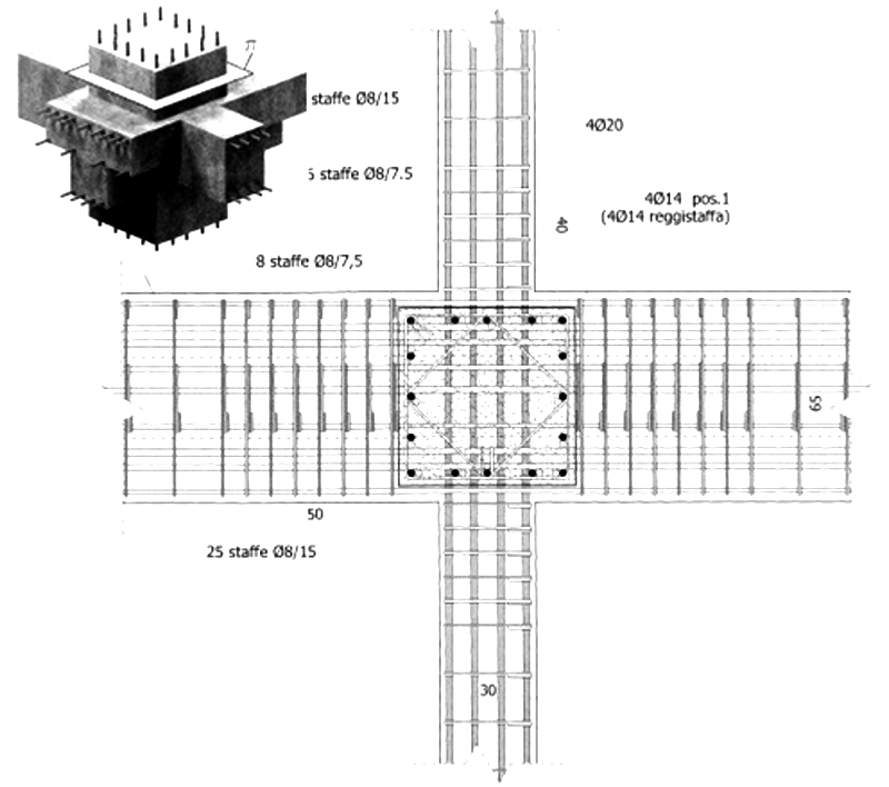 Nelle costruzioni in zona sismica l’interasse delle staffe e la loro quantità, viene ulteriormente aumentata per garantire un comportamento duttile d’insieme e favorire adeguate rotazioni alle cerniere plastiche.