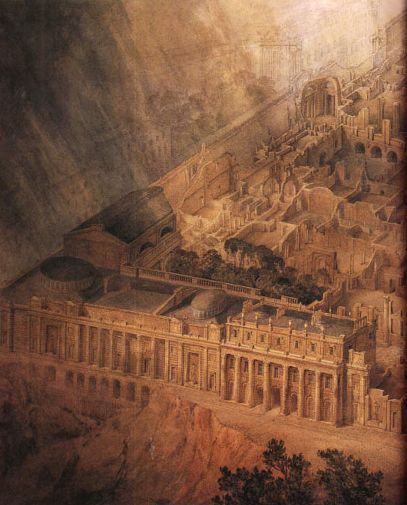 Il rudereTra le modificazioni che i monumenti subiscono, quella più irreversibile e radicale è rappresentata dal suo ridursi a rudere, una condizione che segna il soccombere fisico del manufatto a quel tempo che esso voleva sconfiggere. La rovina esibisce la nuova struttura dell’edificio rivelandone così la costituzione interna, l’essenza estrema dei suoi spazi spogliati di ogni dettaglio, il residuo resistente delle sue relazioni con il contesto. Tuttavia, arrendendosi al tempo, il monumento, ridotto a un frammento, o a frammenti di una perduta unità, relativizza lo stesso tempo che lo ha distrutto, sottraendo a esso la sua infinità. In tal modo il monumento, anche se ridotto a resto, nel momento in cui storicizza il tempo che lo ha disgregato ribalta la sua sconfitta in una vittoria, seppure enigmatica e parziale. Esibendo se stesso come principio irriducibile, ovvero ponendosi come l’inizio e l’origine del monumento che era stato, il rudere conquista infatti una sua virtuale eternità. C’è da dire che questo desiderio di eternità è in realtà anticipato dal manufatto prima ancora che esso sia ultimato. Esiste infatti una fase della costruzione in cui l’edificio si presenta come un rudere esibendo l’immagine del suo decadere. Joseph Michael Gandy ha eseguito alcune tavole le quali, ispirandosi alla visionarietà piranesiana, mostrano la Banca d’Inghilterra di John Soane come un’immensa maceria, capace di liberare nei suoi preziosi frammenti una straordinaria carica poetica. Ma se la monumentalità esprime il destino del manufatto come rudere – si pensi alla rovina descritta da Georg Simmel – il monumentalismo tende a negare questo esito finale attraverso un plusvalore iniziale per il quale l’edificio monumentale si duplica specularmente nel proprio simulacro rappresentando il suo ruolo prima ancora di esercitarlo.