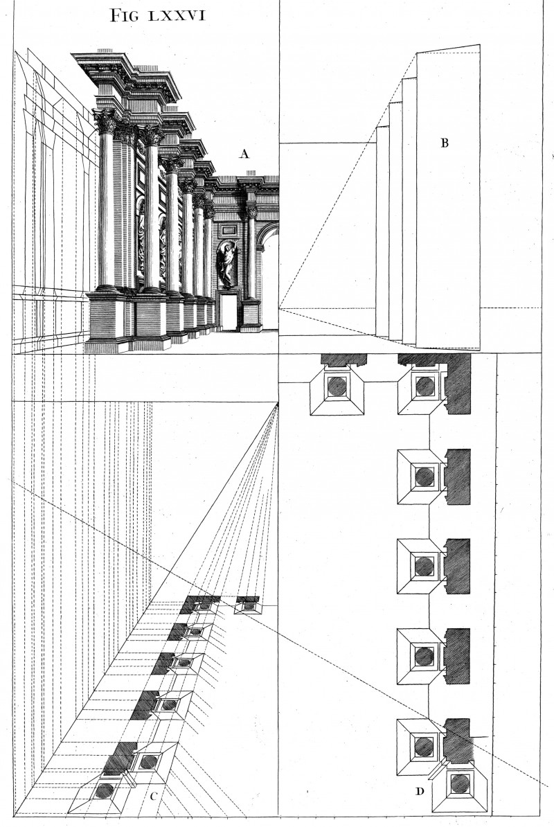 L’esaltazione degli allineamenti convergenti verso fughe sottolineate da vari espedienti prospettici fu, nel Rinascimento, pratica tanto perseguita da agevolare l’uso della prospettiva come metodo di progettazione, anche al punto da condizionare in parte la stessa architettura.