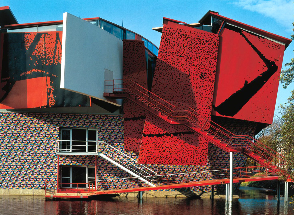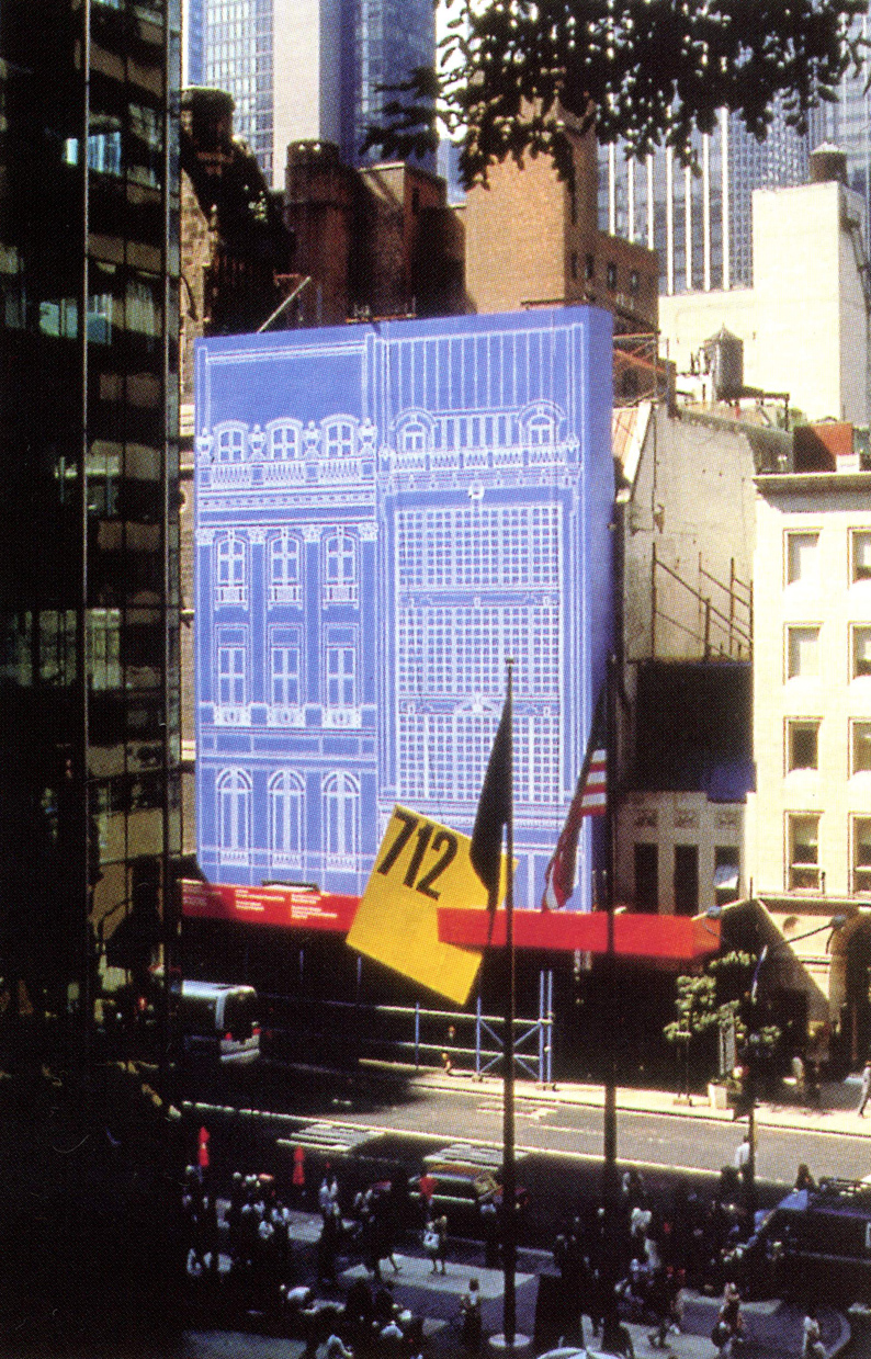 Riguarda la presenza di opere grafiche nell’architettura con funzione decorativa, funzionale o segnaletica. Questo rapporto si è sempre verificato in passato attraverso la manipolazione in chiave figurativa degli elementi architettonici, oppure attraverso l’addizione di apparati specifici non strutturali; oggi, però, con l’accresciuto sviluppo della grafica in funzione linguistica ha assunto importanza molto maggiore. È da segnalare soprattutto il suo ruolo nell’attribuire forza espressiva alle apparenze percettive di particolari opere, sia con l’impiego di nuovi e sorprendenti materiali o tecnologie, sia con la trasformazione dell’architettura stessa in messaggio pubblicitario. Ma è anche da ricordare il suo ruolo funzionale nel contribuire, a volte in modo sostanziale, alla chiarificazione distributiva dei percorsi attraverso segnaletica appropriata.