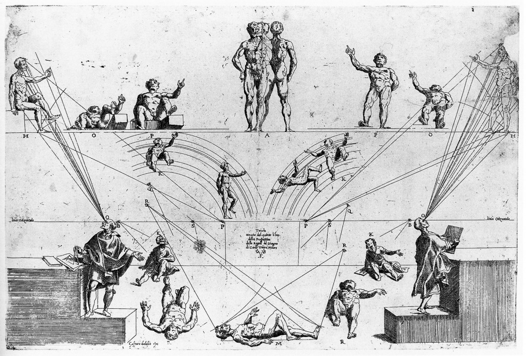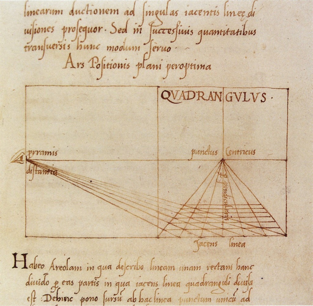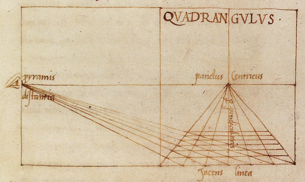 prospettiva. L’identificazione da loro fatta del meccanismo proiettivo del vedere con il meccanismo proiettivo del rappresentare segna l’inizio del concetto di piramide visiva; ne è celebre la dimostrazione compiuta dall’Alberti che nel suo
