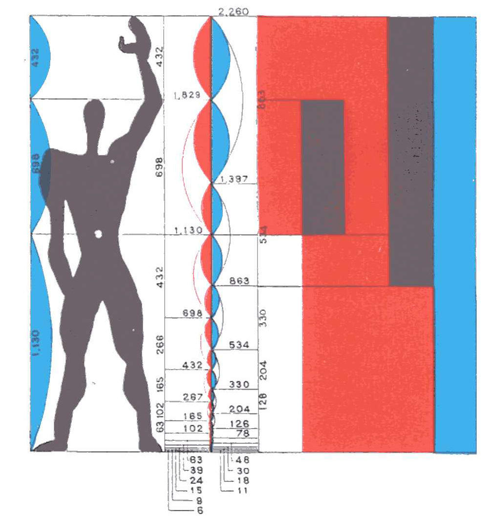 Il modulo proporzionale per eccellenza è quello che Le Corbusier propose nel 1948 con il nome di modulor, per sostenere al tempo stesso che l’uomo ha in sé misure armoniose e che l’architettura può e deve adeguarsi a dette misure per essere ugualmente proporzionata in un quadro di armonia complessiva (ma anche di logica costruttiva e di convenienza produttiva). Il modulor è una successione di misure utili dall’arredo all’urbanistica e si compone di due serie di lunghezze, la rossa e la blu, basate sulla successione di Fibonacci applicata una volta all’altezza del plesso solare (113 cm, secondo Le Corbusier) e una volta all’altezza di un uomo con il braccio alzato (226 cm = 113 cm x 2).