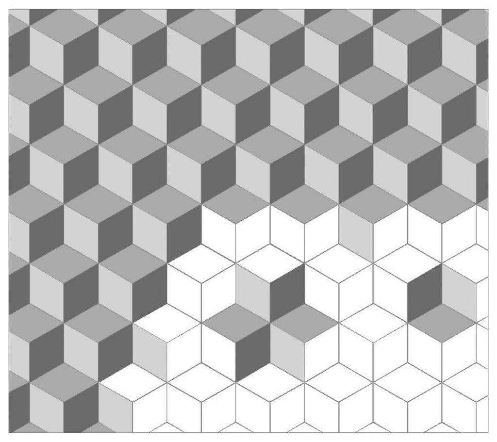 Una particolare tassellatura è ottenuta con rombi da 60° / 120°: questa copertura del piano può essere correttamente interpretata anche come una tassellatura esagonale nella quale ogni esagono è stato suddiviso in tre rombi uguali. Come si vede nella figura ci sono due tipi di vertici: in uno si incontrano 6 rombi in corrispondenza dell’angolo interno di 60° e nel secondo 3 rombi in corrispondenza dell’angolo interno di 120°.