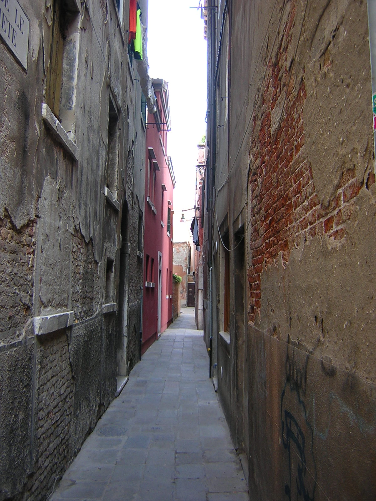Si dovrà attendere il XIV secolo per la definizione di un reticolo viario capace di sostenere anche via terra una connessione tra le diverse parti della città, fino ad allora affidata ai canali d’acqua strutturati attorno al Canal Grande. Si evidenzia così un’articolazione del sistema stradale che richiama il modello della città islamica dal punto di vista dell’organizzazione, ma anche dell’uso privato, dello spazio pubblico. Quanto alle dimensioni, gli statuti medievali distinguono il calle, che è di tre piedi di ampiezza, dalla via, che ne misura quattro. A volte, però, i termini si equivalgono: ‘via sive cali comuni’, dove per calle comune si intende una strada su cui grava per i proprietari confinanti una servitù di passaggio. Sempre in funzione della diversa sezione si distingue tra callesella o calletta e calle larga. La lunghezza, inoltre, può essere altrettanto variabile: si va da brevi tratti ad articolate e tortuose calli lunghe.