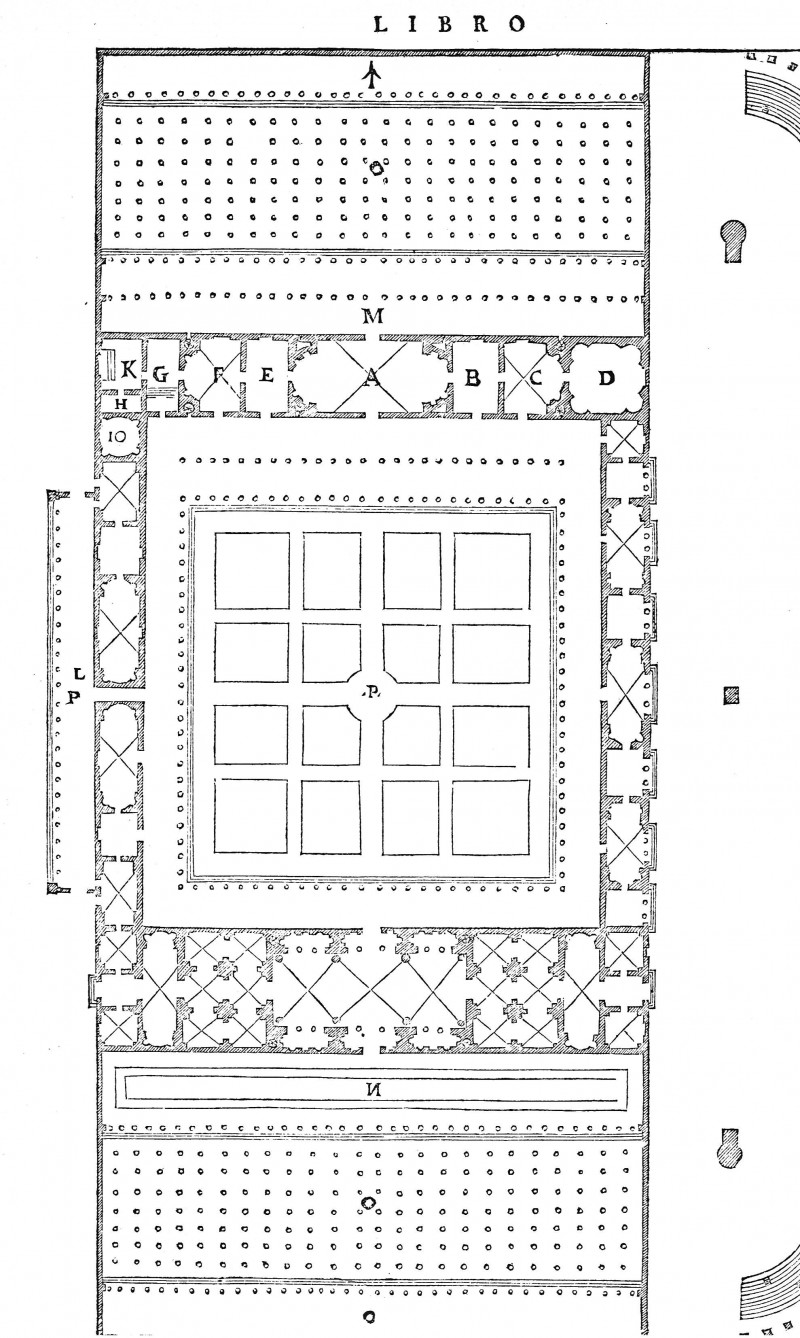 Priene, palestra-ginnasio. I sedili separano lo xystòs dal paradromion (da Miller ST. G., Ancient Greek Atletics, New Haven, 2006, fig. 267).