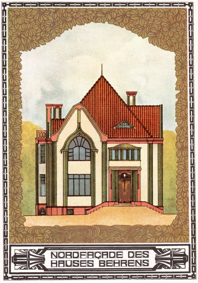 La casa che Peter Behrens costruisce per sé alla Künstlerkolonie di Darmstadt (1901) può considerarsi una versione esoterica dello Jugendstil. La pianta semplice e compatta segue il tipo edilizio della