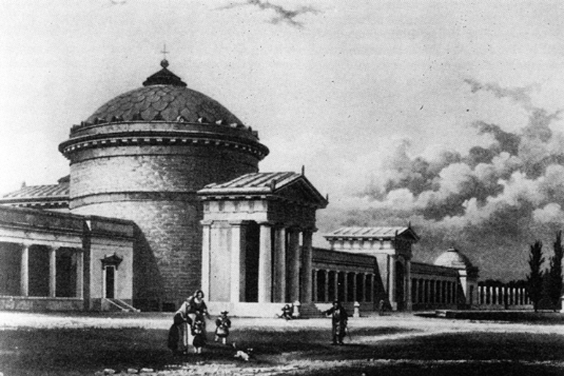 Poco dopo, Alexandre-Théodore Brongniart iniziava il progetto per il C. parigino del Père-Lachaise, ricorrendo al tema della sepoltura in seno alla natura quale simbolico gesto di laica riconciliazione dell’uomo con la morte. Sullo stesso esempio di C. parco si realizzeranno anche gli impianti di Vienna, Amburgo, Barcellona e, nel XX secolo, il C. sud di Stoccolma. A esso si contrappone il C. edificio, nel quale il manufatto architettonico prevale nettamente sull’elemento naturale. Secondo questo modello, chiaramente desunto dal Camposanto di Pisa, verranno conformati la maggior parte dei C. italiani ottocenteschi – si vedano, tra gli altri, il Vantiniano a Brescia (1815), il C. di Staglieno a Genova (1835), il Verano a Roma (1855), il Monumentale a Milano (1863).