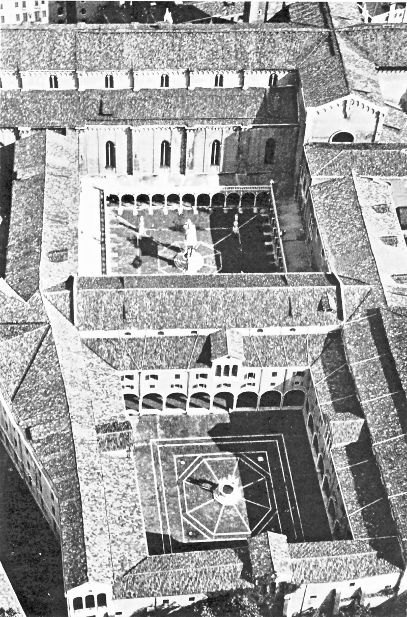 I Domenicani affrontano il problema di costruire proprie abitazioni fin dai primi anni del secolo XIII e, in quanto canonici, adottano il modello claustrale con i tradizionali ambienti che lo circondano, salva la necessità di adeguarlo alle preesistenze e alle ristrettezze di spazio conseguenti a una collocazione all’interno o a ridosso delle cinte murarie. Le Costituzioni del 1228 impongono precisi limiti all’altezza dei fabbricati, che si vogliono