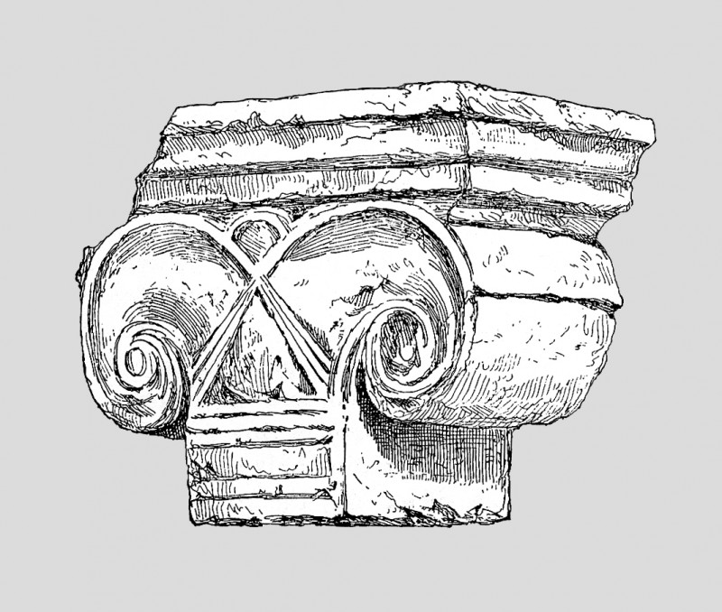 Il più antico (IX-VI sec. a.C.) è un tipo in cui le volute sono originate da un triangolo la cui base coincide con il piano di posa. Sia le volute a sezione convessa sia il triangolo sono bordati da filetti e superiormente può esservi un abaco. L’elemento è di origine orientale, essendo raffigurato su bassorilievi assiri e babilonesi. Secondo alcuni studiosi rappresenterebbe una stilizzazione dell’ “albero della vita”, motivo decorativo noto anche in Egitto. Molti esemplari di questo tipo sono stati rinvenuti in Palestina e a Cipro e in tutti i casi noti si tratta di capitelli di pilastro o di stele votiva.